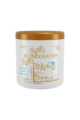 Blonderator je kompaktný, bezprašný odfarbovací prášok modrej farby s vôňou lesných plodov. Vynikajúci odfarbovací účinok kombinuje s účinnou ochranou. Jeho pôsobením prírodné vlasy budú o 8 odtieňov jasnejšie. Prostredníctvom guarovej gumy, ktorá je rozhodujúca z hľadiska jeho textúry, produkt sa pevne prilepí na vlasy, zatiaľ čo keratín ich ošetruje a chráni. Použitie výrobku si vyžaduje odborné znalosti, preto ho zverte špecialistovi - vášmu kaderníkovi - minimálne sa aspoň s ním pred použitím poraďte. Výrobok je možné zakúpiť iba na vlastnú zodpovednosť, nezodpovedáme za prípadné nepríjemnosti spôsobené jeho nesprávnym použitím!